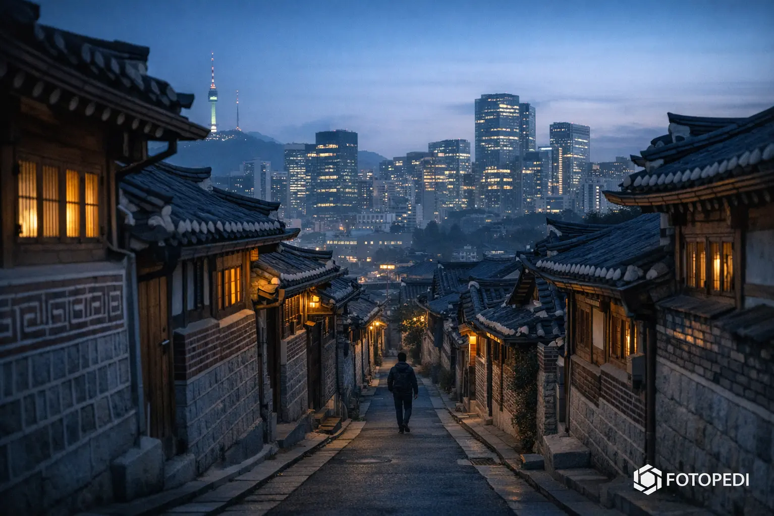 Seoul’de fotoğraf çekmek yalnızca estetik üretmek değildir; bu şehirde her kare, hanedan saraylarından yüksek teknolojili bloklara uzanan bir sürekliliği içinde taşır ve bu süreklilik kadrajın dilini belirler. Joseon döneminin avlulu saray mimarisi ile çağdaş cam cephelerin yan yana durması, fotoğrafçıyı tek bir zaman dilimine değil, eşzamanlı katmanlara bakmaya zorlar ve bu bakış, kompozisyonu doğrudan etkiler.