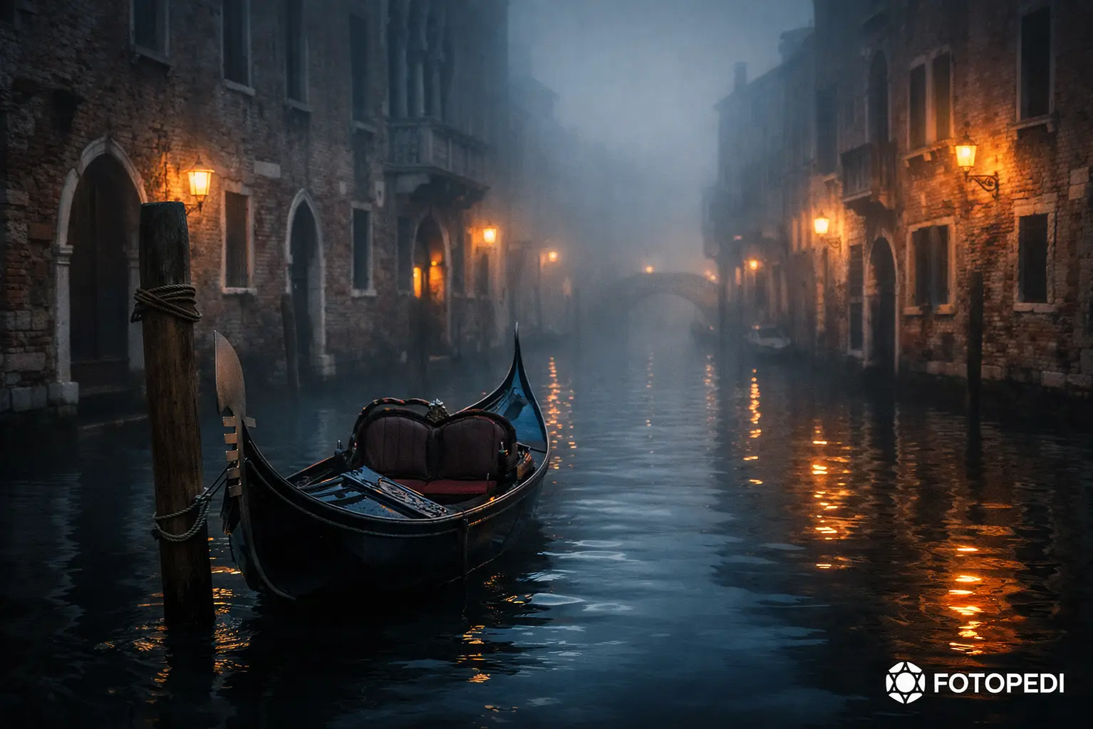 Gece olduğunda kanallar koyu bir yüzeye dönüşür ve sarı tonlu lambalar suya uzun yansımalar bırakır. Yapay ışık ile karanlık arasındaki kontrast, dramatik ama abartısız sahneler üretir. Hafif uzun pozlama suyu ipeksi gösterirken taş cephelerin sert dokusu sahneye denge katar.